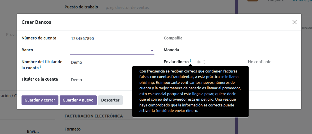 The company bank account linked to this invoice is not trusted, please double-check and trust it before confirming, or remove it