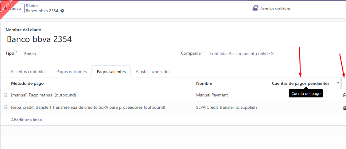 Alguien sabe si existe algún módulo u opción para poder poner en los "Modos de pago" una cuenta transitoria específica sin tener que realizar esa configuración en el propio Diario.
